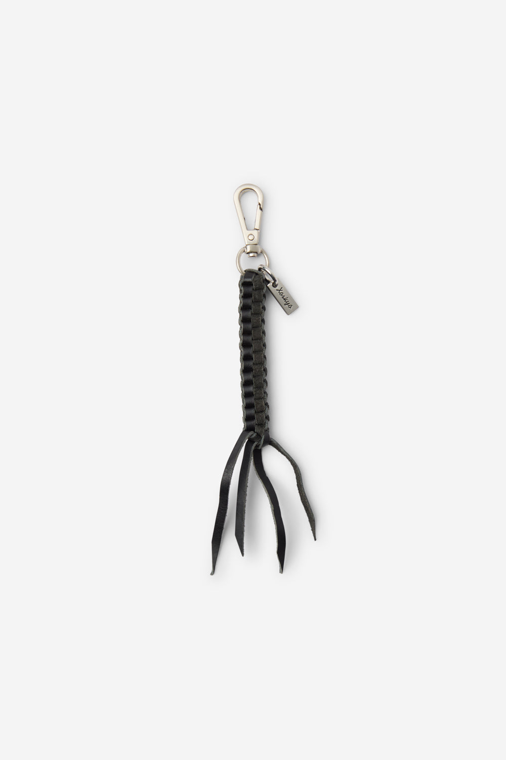 Keyring string in leather with carabiner and plate Xorkyo. Perfect for make your bags uniques. Designed in Spain