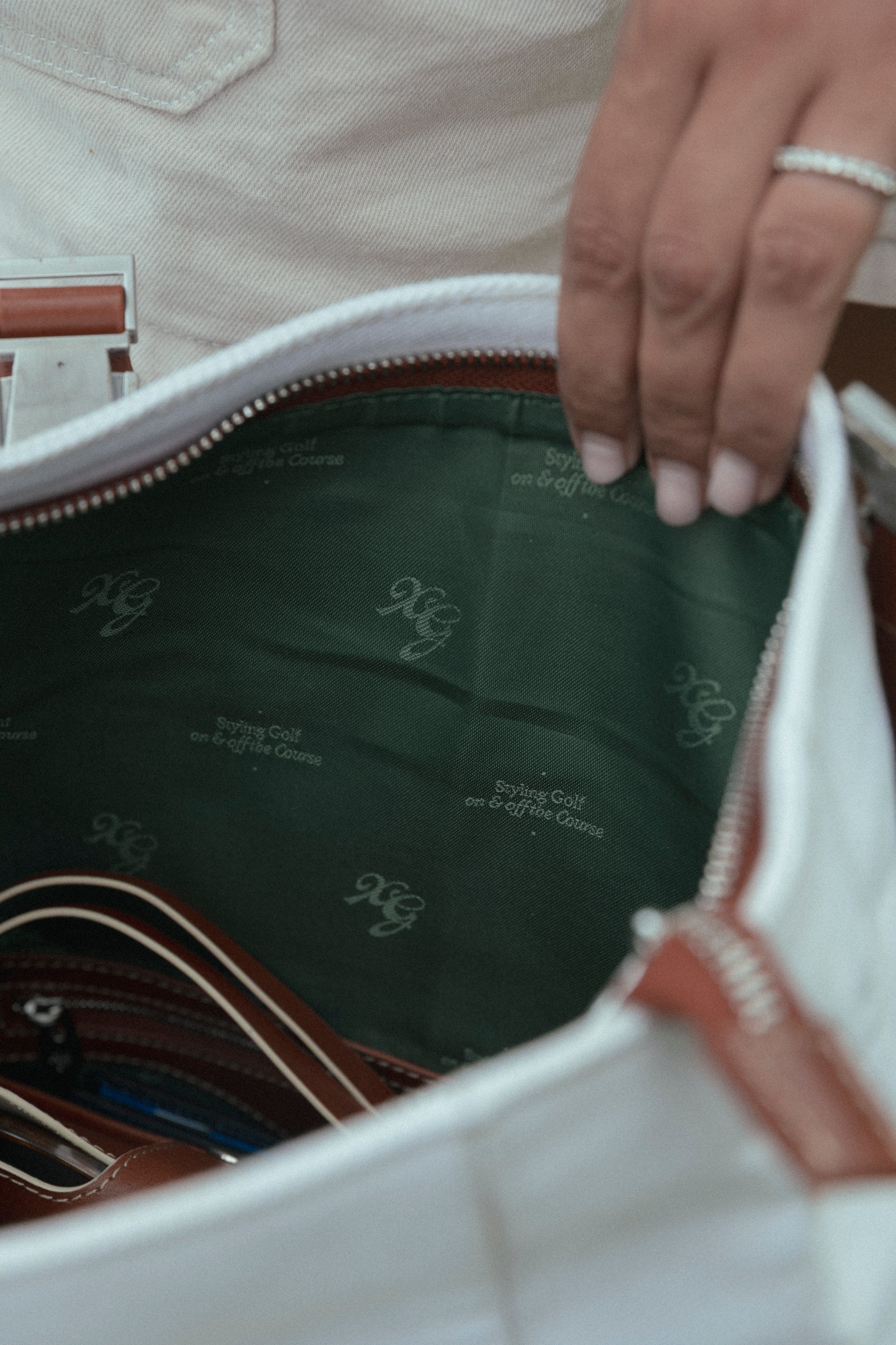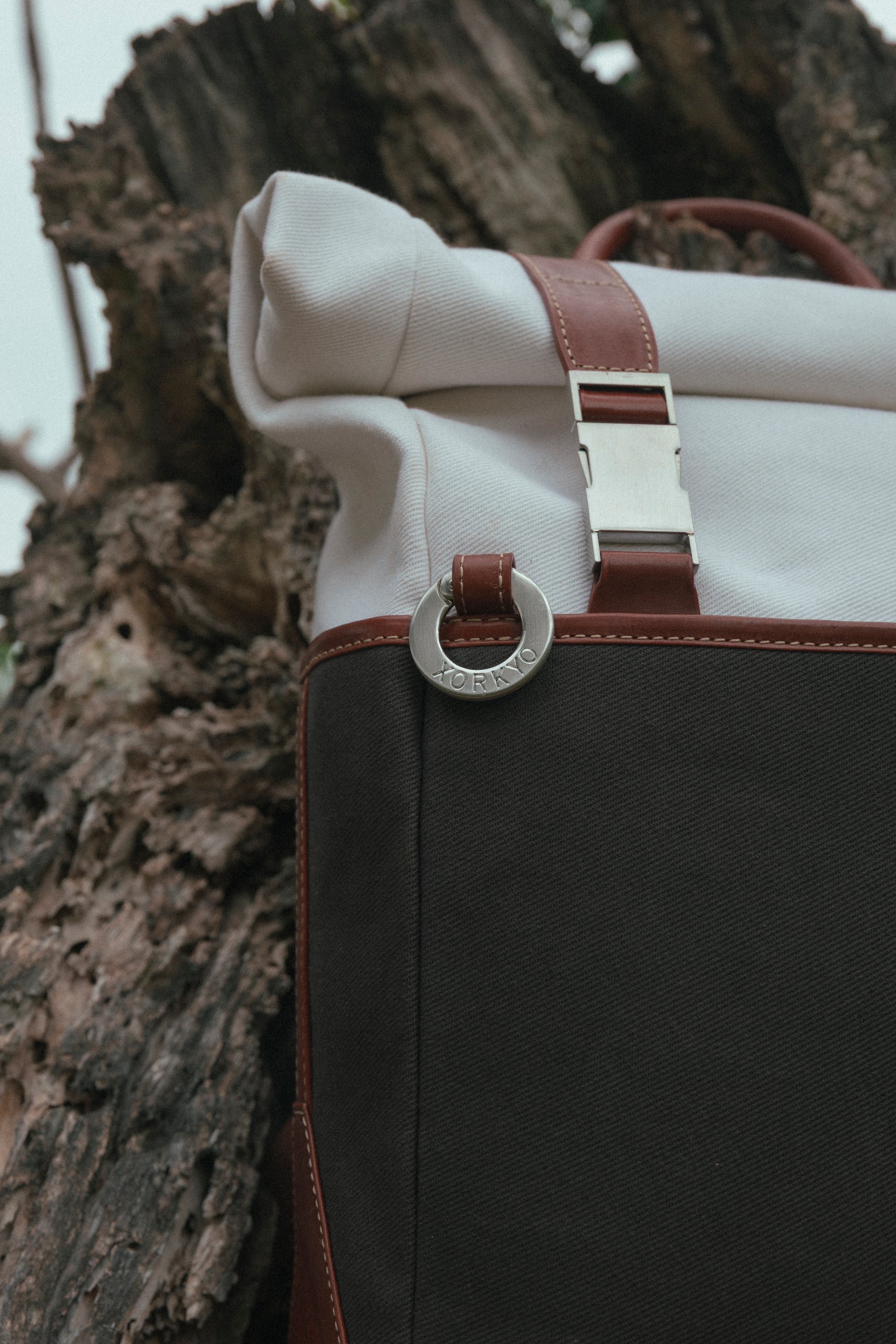 100% organic cotton canvas fabric combined with vegetable-tanned cowhide. Custom water-resistant jacquard lining. Brushed matte silver hardware. Nickel-free. As these are fine materials, the colors may vary from one piece to another.